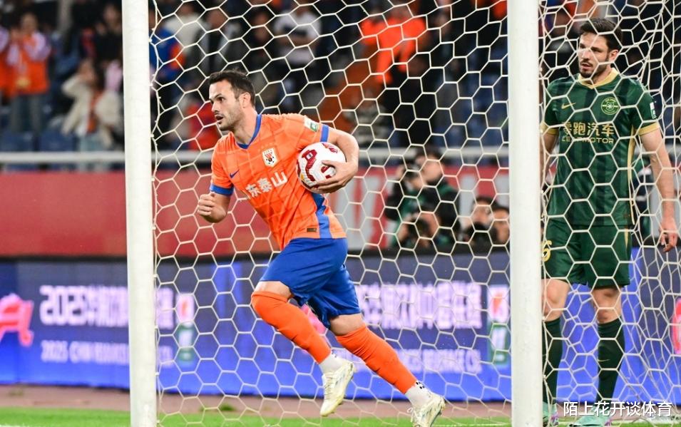 大举压上反扑的山东泰山,在第24分钟扳平了比分,积极的前场拼抢完成抢断后,顺势形成反击,泽卡禁区内背身拿球扛住防守球员后,顺势做给了卡扎伊什维利,后者轻松破门得分,将比分追至1平。
