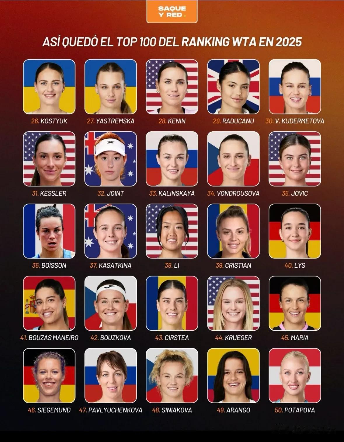 WTA官方最新世界排名揭晓,排名前100选手中,中国金花郑钦文、王欣瑜、张帅分别位列第24、56、87位!排名前30选手中,莱巴金娜、大阪直美、郑钦文位列第5、16、24位,居亚洲选手前三位!top1-50⬇️⬇️