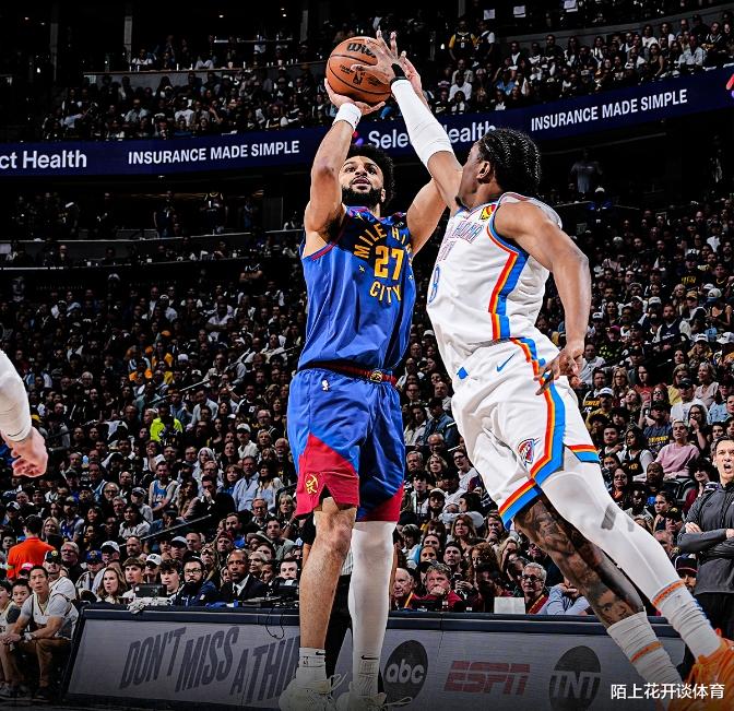 好在队友状态不错,帮助掘金队在约老师发挥不佳的情况下一直和雷霆鏖战至了最后一刻,前两战疯狂打铁的小波特,此役一个人命中了5记三分球砍下了21分,穆雷也打出了27+4+8+4+1的全能表现,替补登场的威少虽然手感不是非常好,也砍下了8分、1个篮板、4次助攻和2次抢断,阿隆戈登第四节最后时刻再度用三分球帮助掘金续命,最终也飙下了22分,为球队胜利立下了汗马功劳。