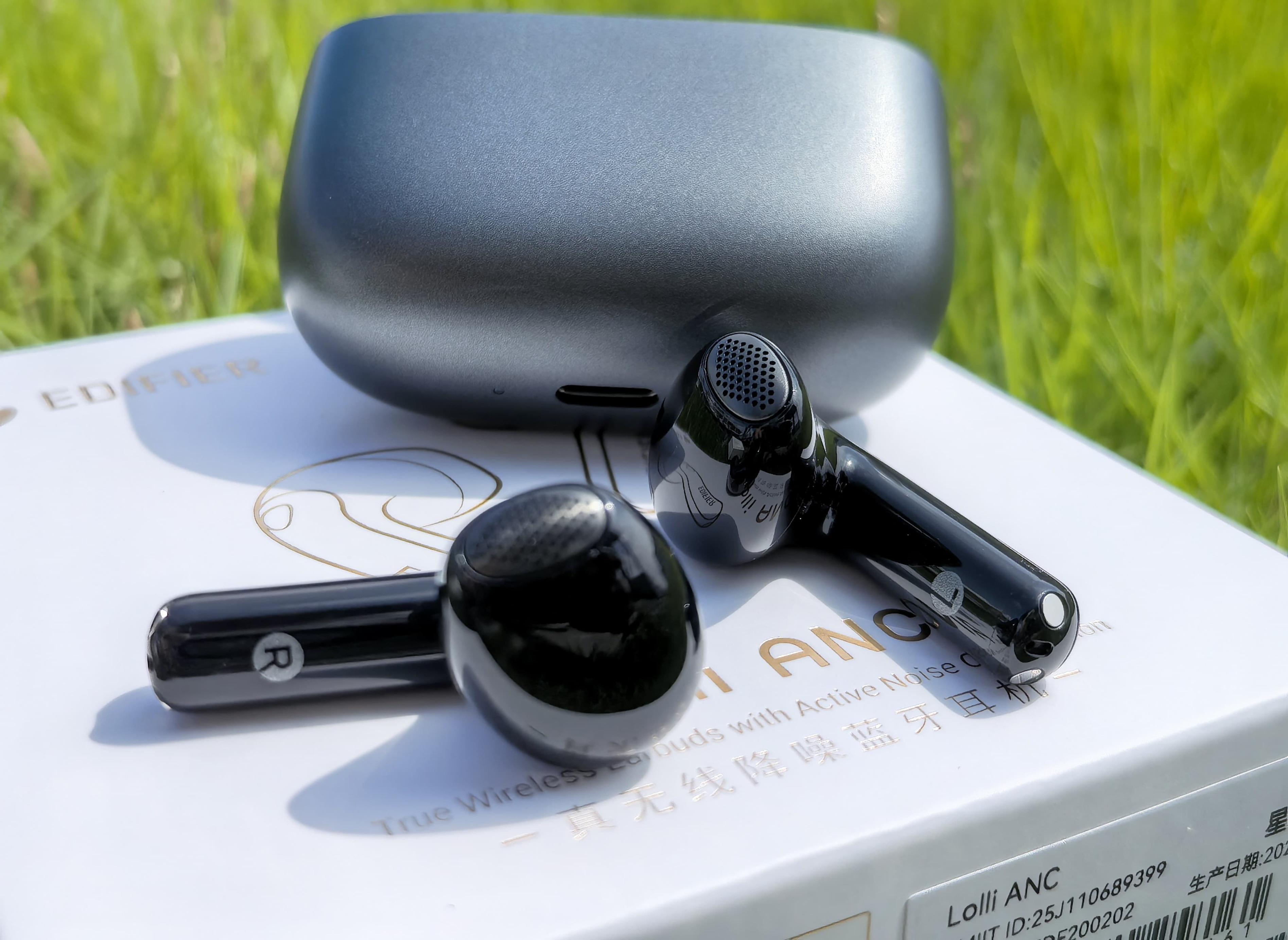 拿到手之后确实很惊艳,外观方面确实没的说,大厂毕竟是大厂,不论产品大小都有自己固定的家族风格和设计风格,lolli ANC同样如此,具有正统的漫步者基因,EDIFIER的logo显的既正统又高级,我个人是非常喜欢这个设计。戴在耳朵上各个角度都非常耐看,适合于各种场景。