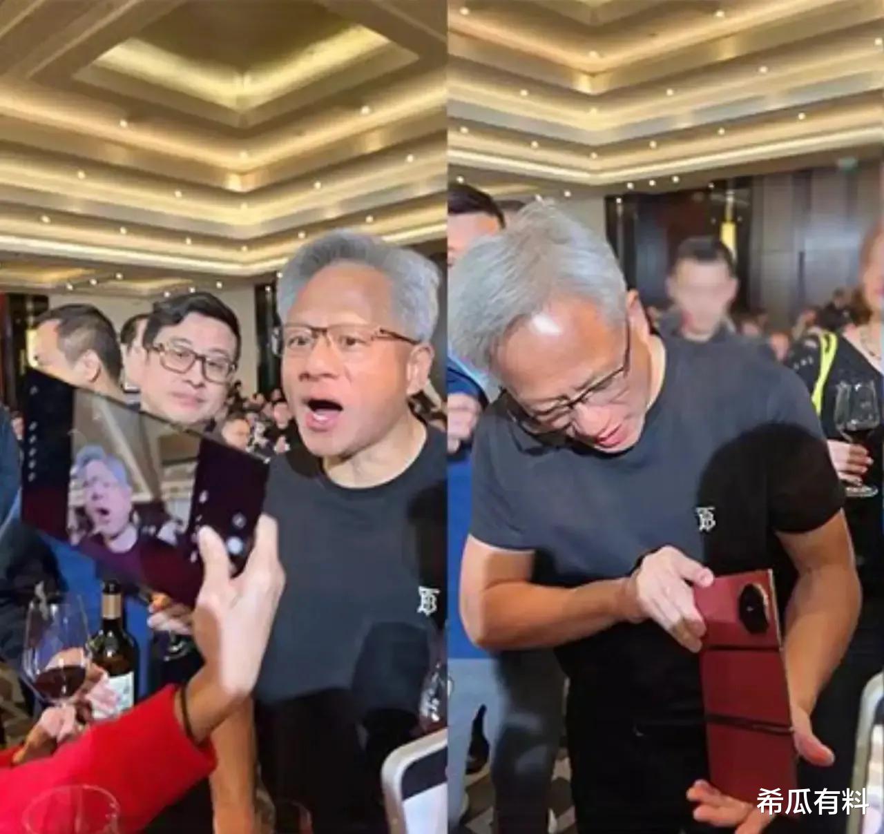 黄仁勋好像是第一次见到这样的手机,把手机横着看看,竖着看看,看看正面,又看看反面,惊呼道:太不可思议了!