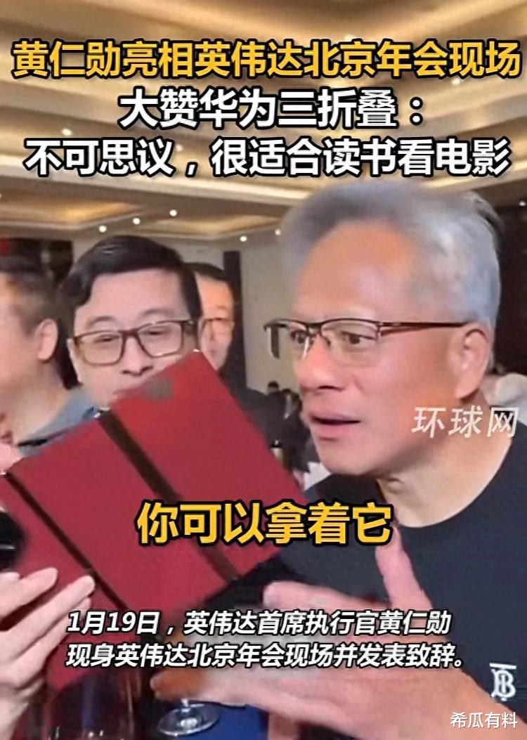 真没想到,英伟达总裁居然大赞华为三折手机,他好像是第一次看到实品。