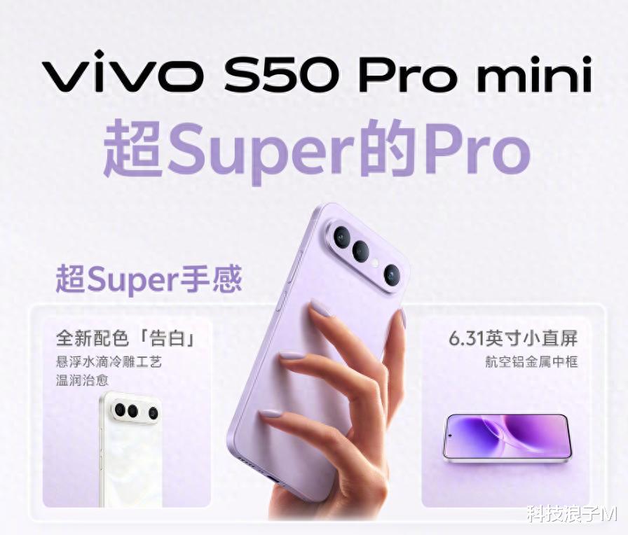 vivo S50 Pro mini一共带来三款配色,下图中的就是灵感紫配色,如雾霭般的淡紫色仙气十足,6.31英寸小直屏握持手感极佳,堪称手小星人的最佳选择;它的横向纯平Deco设计,将镜头模组与背板完全齐平,这一点真的很罕见,也提升了手机的精致感和使用感。航空铝金属中框,看着质感就很高级,而且如此小巧精致的机身内,还内置了6500mAh蓝海电池,实测续航一整天没问题,完美解决了小屏手机的“续航难题”。
