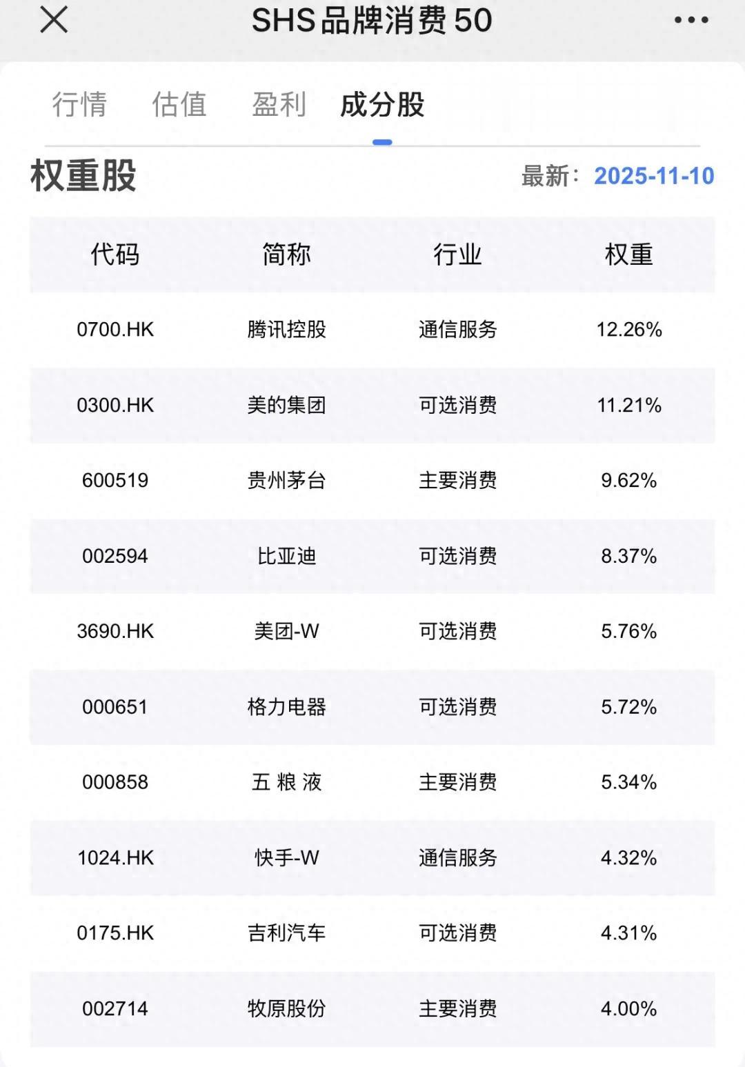 SHS品牌消费50覆盖了港股,所以它有腾讯美团这些,而品牌工程没有。