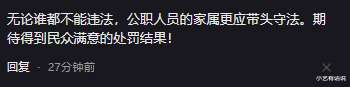 不论是谁都不能违法,而公职人员的家属,更应该起到模范带头作用!期待得到民众满意的处罚结果!