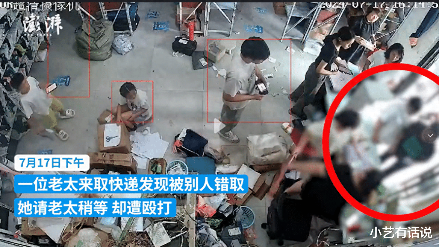 根据监控画面显示,当天,因为一个快递取错了,店主让老太稍等,老太就突然动手了,一旁的白衣女子还想拿扫把反击,让女店主给拦了下来,不然就是互殴了!