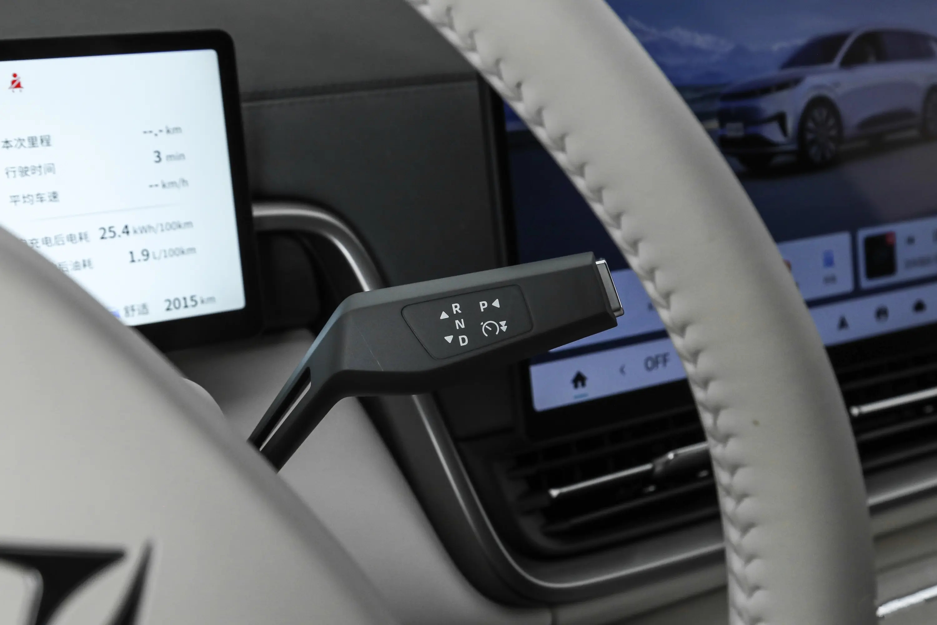 内饰方面,该车配备了10.25英寸液晶仪表盘和15.6英寸2.5K中控屏幕,采用了电子怀挡式换挡机构,不会侵占前排地台空间,这样一来,前排地台的储物空间就更多了,而且还采用了上下双层设计,可以容纳更多物品。该车还配备了50W手机无线充电面板。