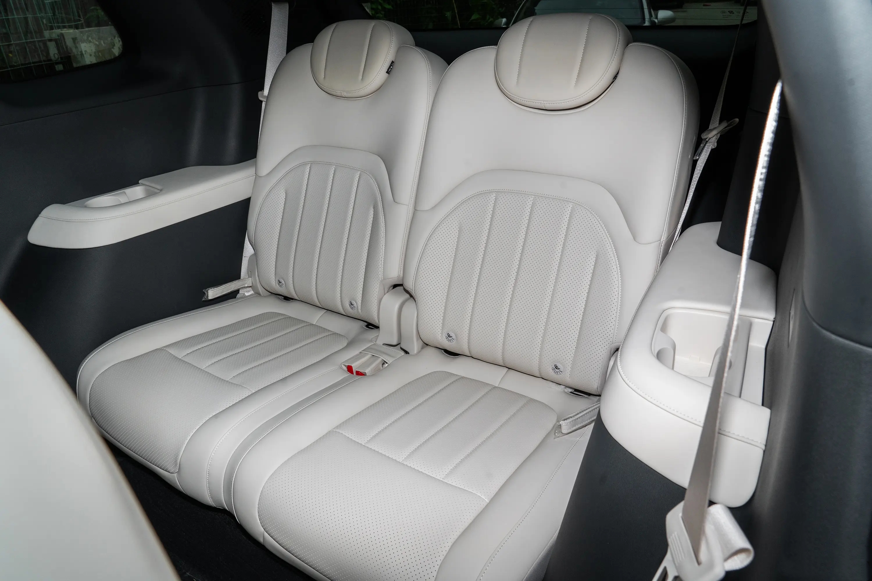 空间和座椅方面,以六座版车型为例,该车的主副驾座椅带有记忆/迎宾/通风/加热,支持8点式按摩。第二排座椅支持前后调节、靠背调节、腿拖调节、通风加热,右侧座椅支持一键零重力模式,可以进行加热/通风/10点按摩,腿部空间和头部空间都十分宽敞,可以带来很舒适的乘坐体验。