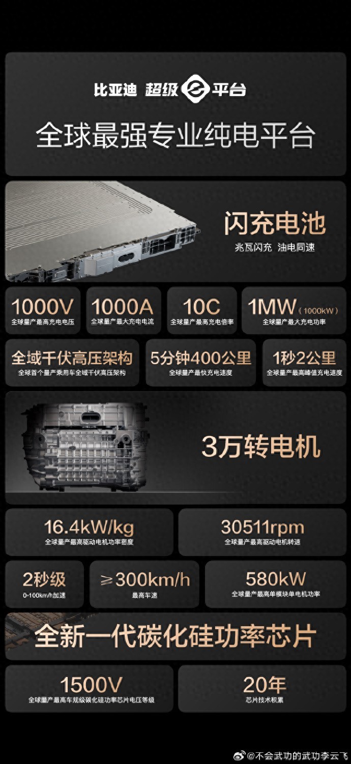 超级e平台凭借兆瓦闪充、三万转电机和高耐压等级的碳化硅模块等近11项全球之最,近期在行业饱受热议。尽管技术领先,比亚迪仍面临外界对超充基建速度、技术兼容性及成本控制的质疑。
