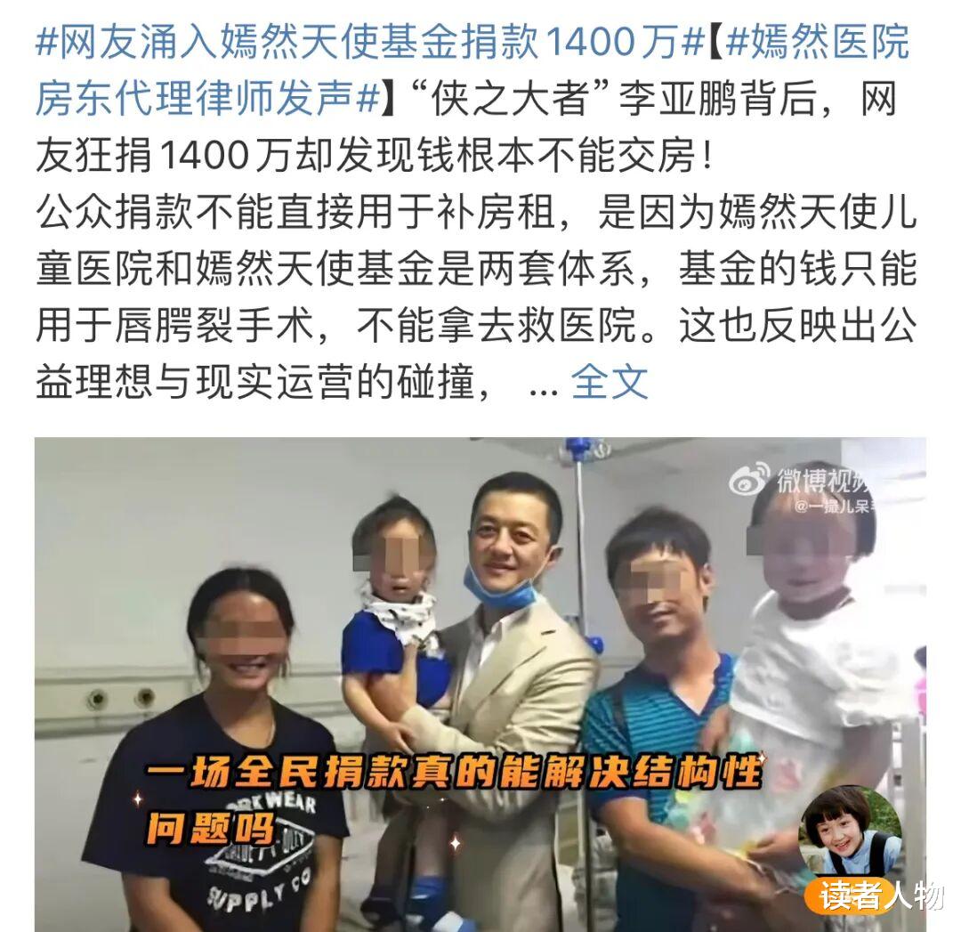 最核心的矛盾,在于公益与商业之间的资金壁垒。嫣然天使儿童医院因拖欠2600万元租金面临关停,李亚鹏个人还需对其中270万元承担连带责任。
