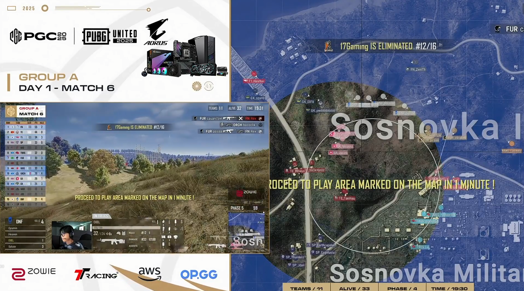 圈形北部有一大片平地是待不住的,机场内的队伍可以坐山观虎斗,TWIS很可能成为最后的赢家,DNF选择和TE爆了,SP知道前面有TWIS堵着自己,所以也选择来山头换分。TWIS趁山上队伍打起来时果断劝架,但TE打得很油,找准时机抽身让TWIS先把DNF打掉,自己绕圈边还清掉了SP的独狼,场上变成4打3的局面,TE先行击倒TWIS两人,但自己拉枪线的选手也被击倒,剩下这波公平的2v2中TWIS枪法发挥没让TE完成最后的翻盘。