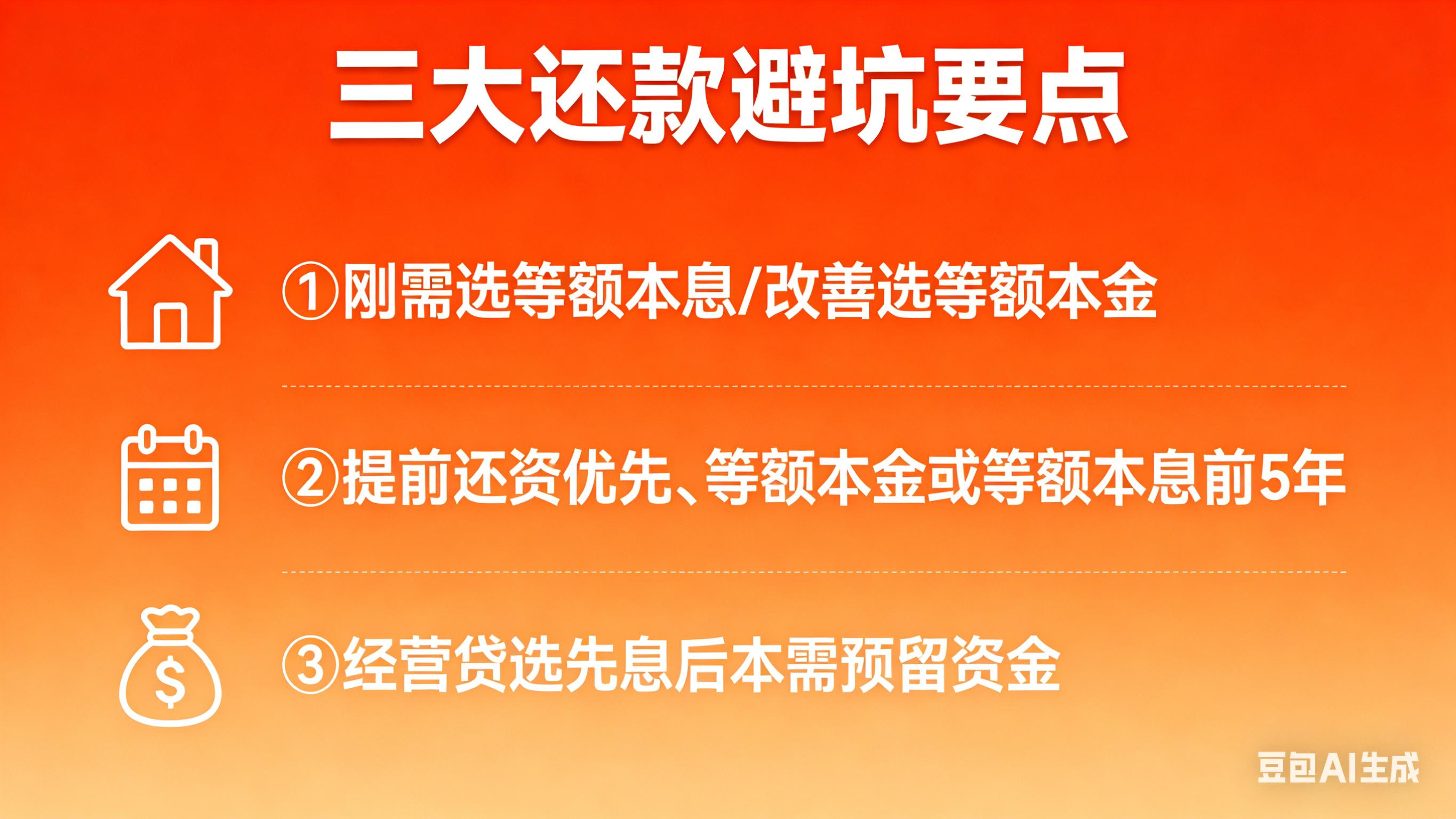 3. 经营性贷款选先息后本,务必预留到期还款资金,避免逾期。