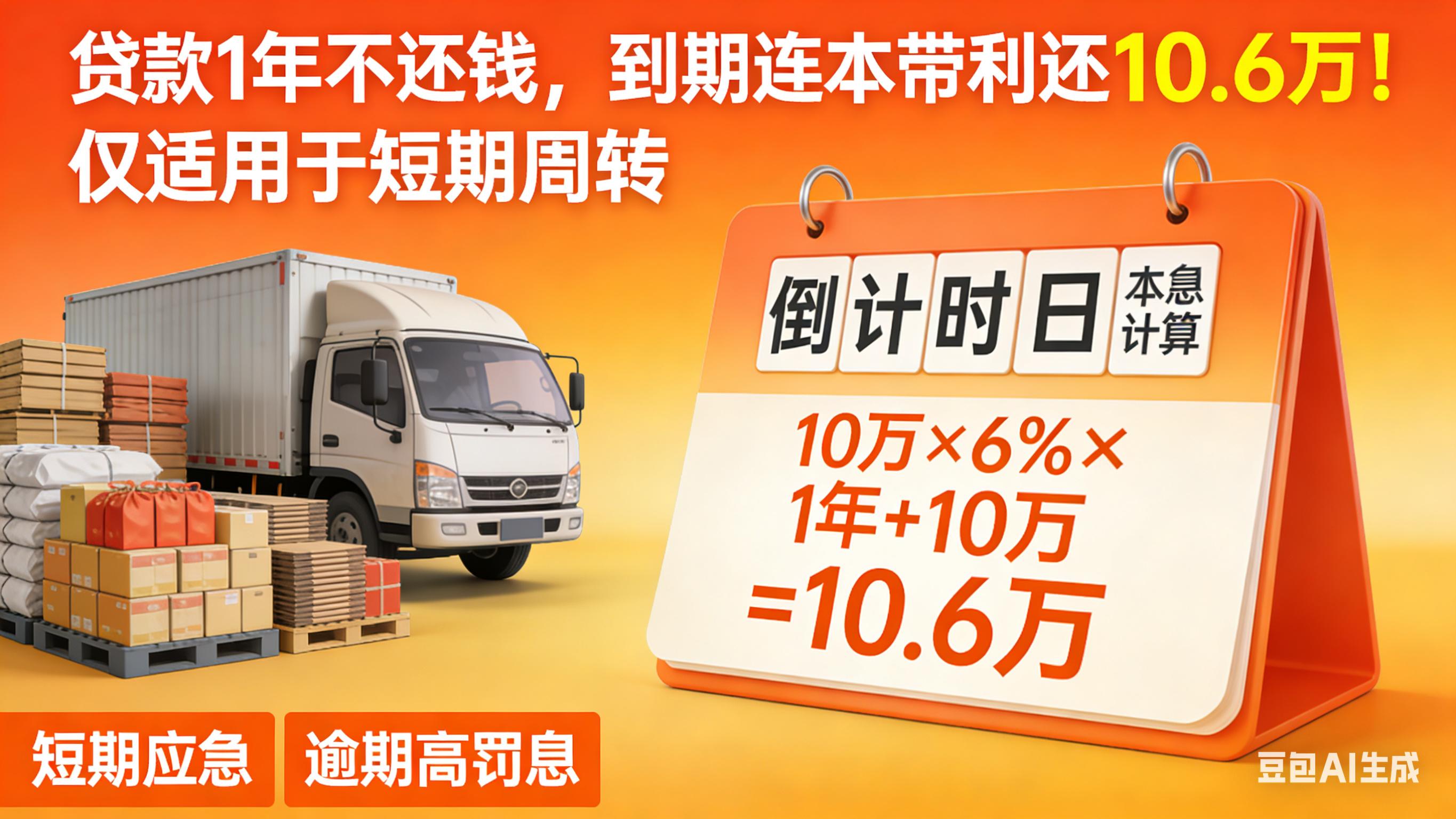 核心逻辑:贷款期间不还钱,到期一次性还清本金+利息,比如借10万用1年,到期连本带利还10.6万(假设年利率6%)。
