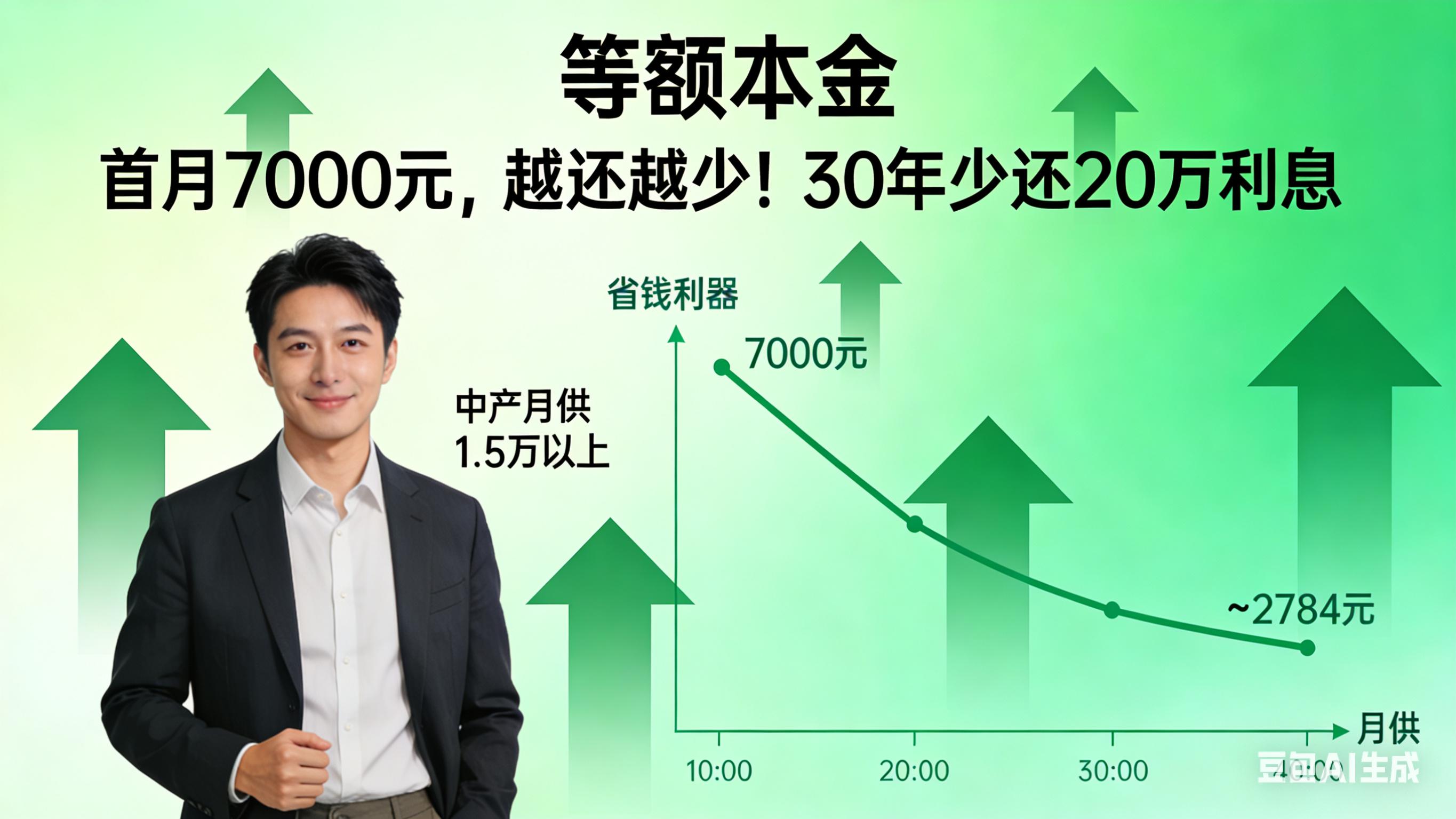 避坑提醒:总利息比等额本金高!比如100万房贷,30年下来可能多还20万利息,提前还款要趁早(建议前5年)。