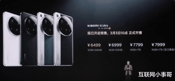 小米15 Ultra提供多种存储版本,包括12GB+256GB、16GB+512GB、16GB+1TB以及16GB+1TB(双卫星版),售价分别为6499元、6999元、7799元和7999元,满足不同用户需求。