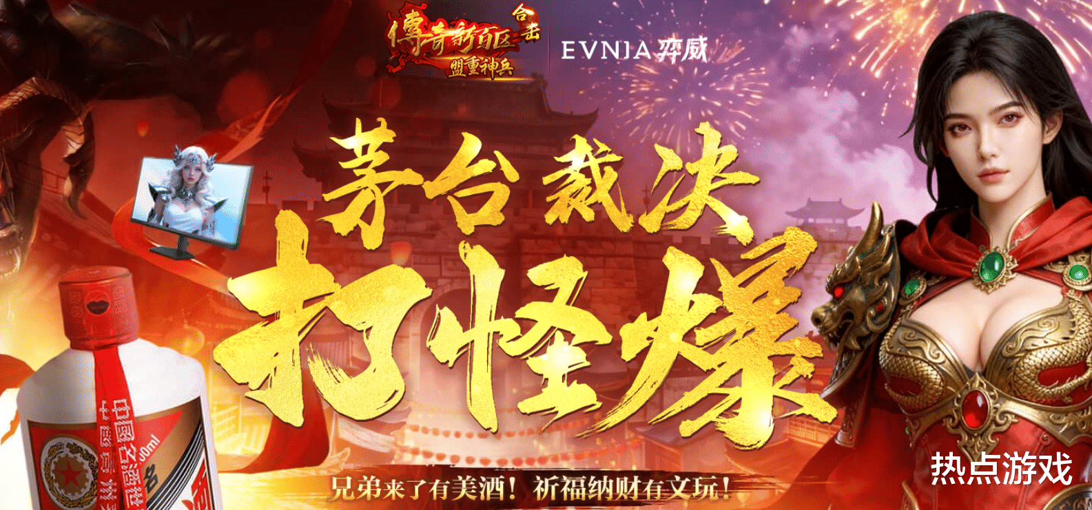 若将视线从灶台香案移向电脑屏幕,会发现游戏玩家群体同样有一套自成体系的“迎财仪式”。登录游戏领代币,完成活动抽皮肤,又或者各种零碎的游戏奖励,核心便是希望玩家付出自己时间维持活跃,来换取游戏内的物品。不过在盛趣的热血传奇这里,迎财神的方式更简单粗暴——打打小怪,就能爆游戏外的飞天茅台。