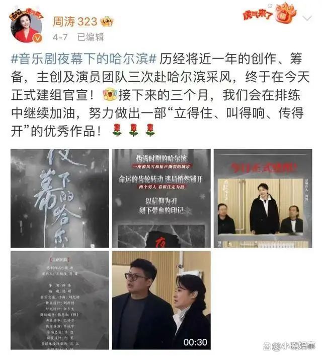 4月7日,一则音乐剧建组的消息引起关注。那部名为《夜幕下的哈尔滨》的原创剧目,正式开始排练。而这次,周涛出现在了幕后——她是总制作人。