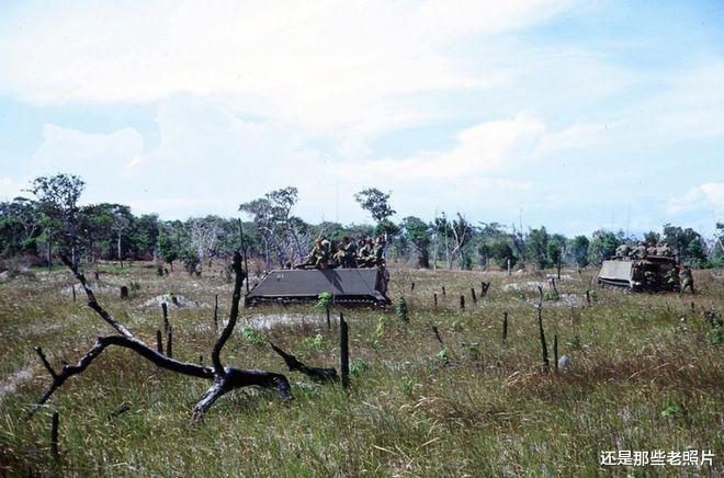 1970年越南战场上,来自新西兰皇家军团的士兵在Phuoc Tuy省沿海地区对越共的一次行动中。
