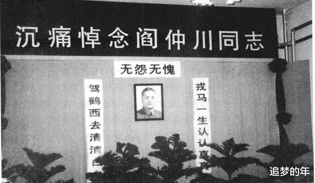 2002年6月22日,阎仲川在北京逝世,有昔日战友为其送来一副挽联。上联:戎马一生认认真真;下联:驾鹤西去清清白白。横批:无怨无愧。