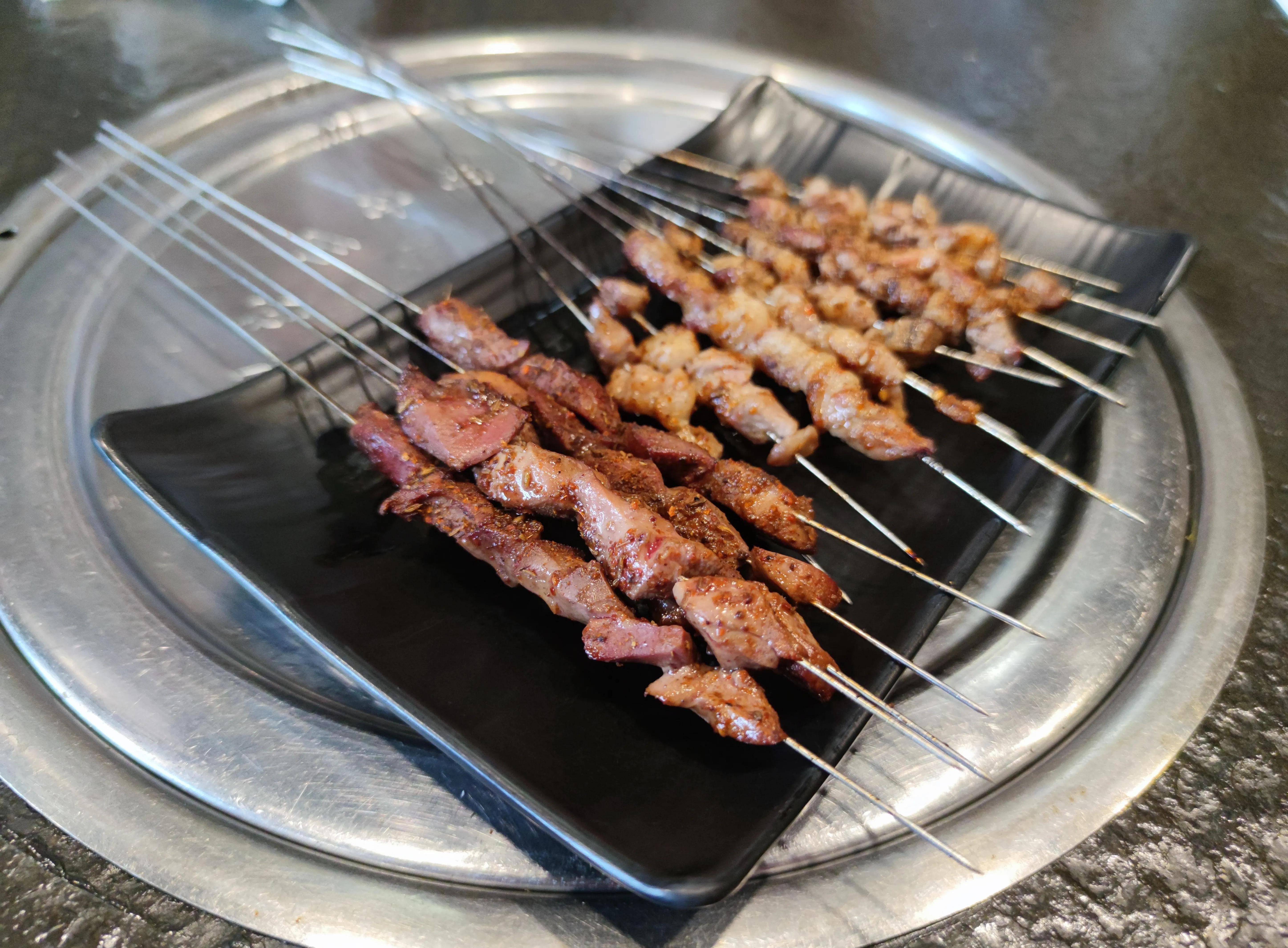 肉香四溢,加上双层小烤炉的设计、朴素的芝麻花生蘸料倒是给人留下了难忘的印象。
