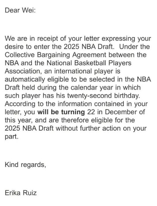 林葳说:“我知道NBA的竞争很激烈,但我也希望自己能站在一个更高的舞台上,看看自己的极限在哪里。”