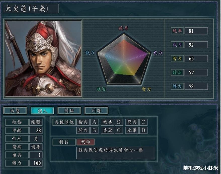 1,太史慈。全能型选手,戟神。