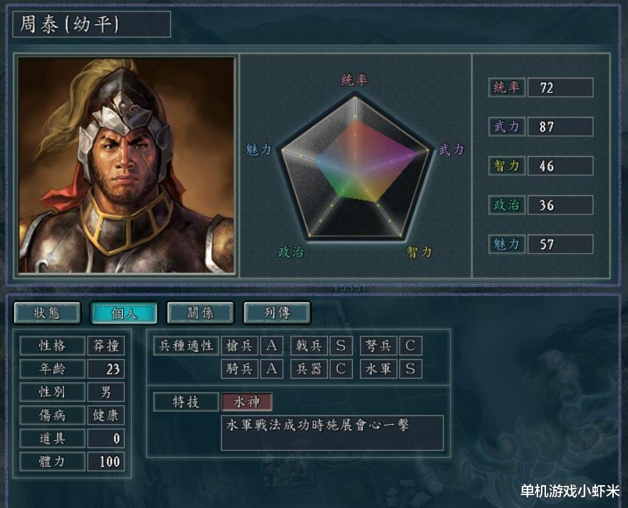 3,周泰。全能型选手,水神。