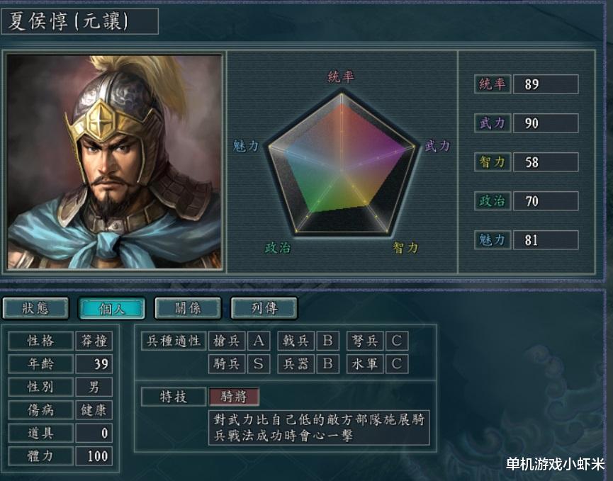 3,夏侯惇。骑兵S,天然的骑兵领袖。