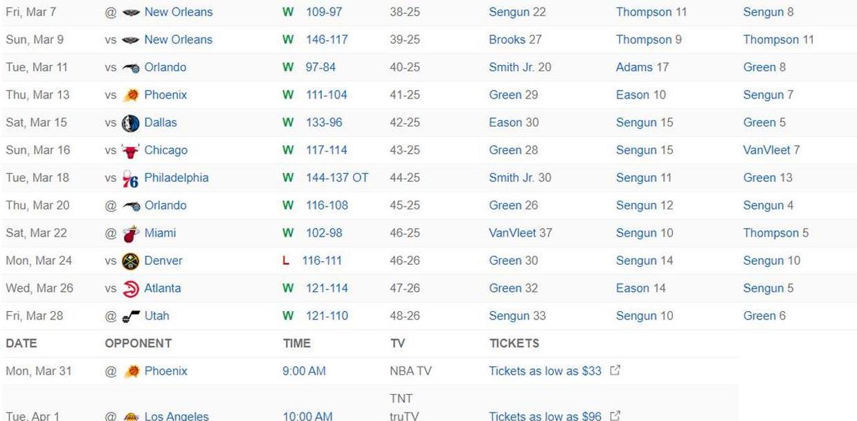 火箭势不可挡狂取二连胜嘿,告诉大家一个好消息!休斯顿火箭队最近状态超好啊,刚刚大胜犹他爵士,现在已经拿到了二连胜。而且你看他们这战绩,过去12场比赛狂赢了11场!整个三月份简直无敌了,11胜3负的成绩。现在火箭队在西部排名稳居第二,跟第三的掘金有2个胜场的优势,跟第四的湖人更是拉开了3.5个胜场呢。这势头,真的是越来越猛啦!