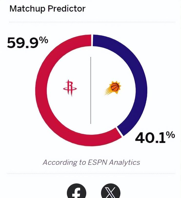 专家不看好太阳进季后赛ESPN算了算,说火箭打赢太阳的概率大概是59.9%,但太阳在自己家打球的优势也不大,只有40.1%的胜算。更惨的是,有个叫BXR的东西还预测太阳进季后赛的概率低得吓人,才5.5%。
