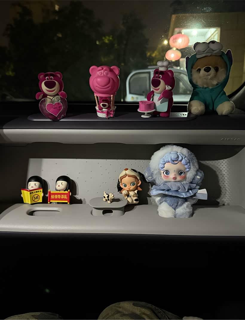 还有就是实用性。B01的副驾 “魔术拓展坞” 特别讨喜,我自己网购了折叠化妆镜和小桌板,午休时调平座椅就能补妆、吃外卖,比同事只能放包的副驾实用太多。还有母婴级认证的座椅,提车时基本没异味,不用像别人那样放半个月活性炭。