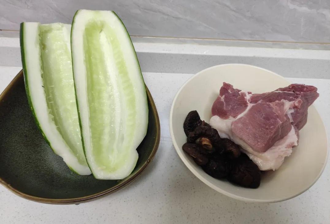 准备好旱黄瓜、腿肉和干香菇,再加上食盐、蚝油、酱油和香油,就可以开始了。