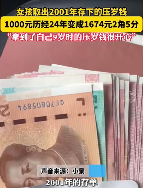 泛黄的存单抖落时光的灰尘,杭州姑娘小景握着24年前的千元存款,在银行窗口前完成了与童年的跨世纪握手。这张2001年的定期存单,在经历自动转存23年活期后,最终兑现成1674.25元。当网友为"24年利息不足一倍"争论不休时,故事里的温情早已穿透数字的屏障。
