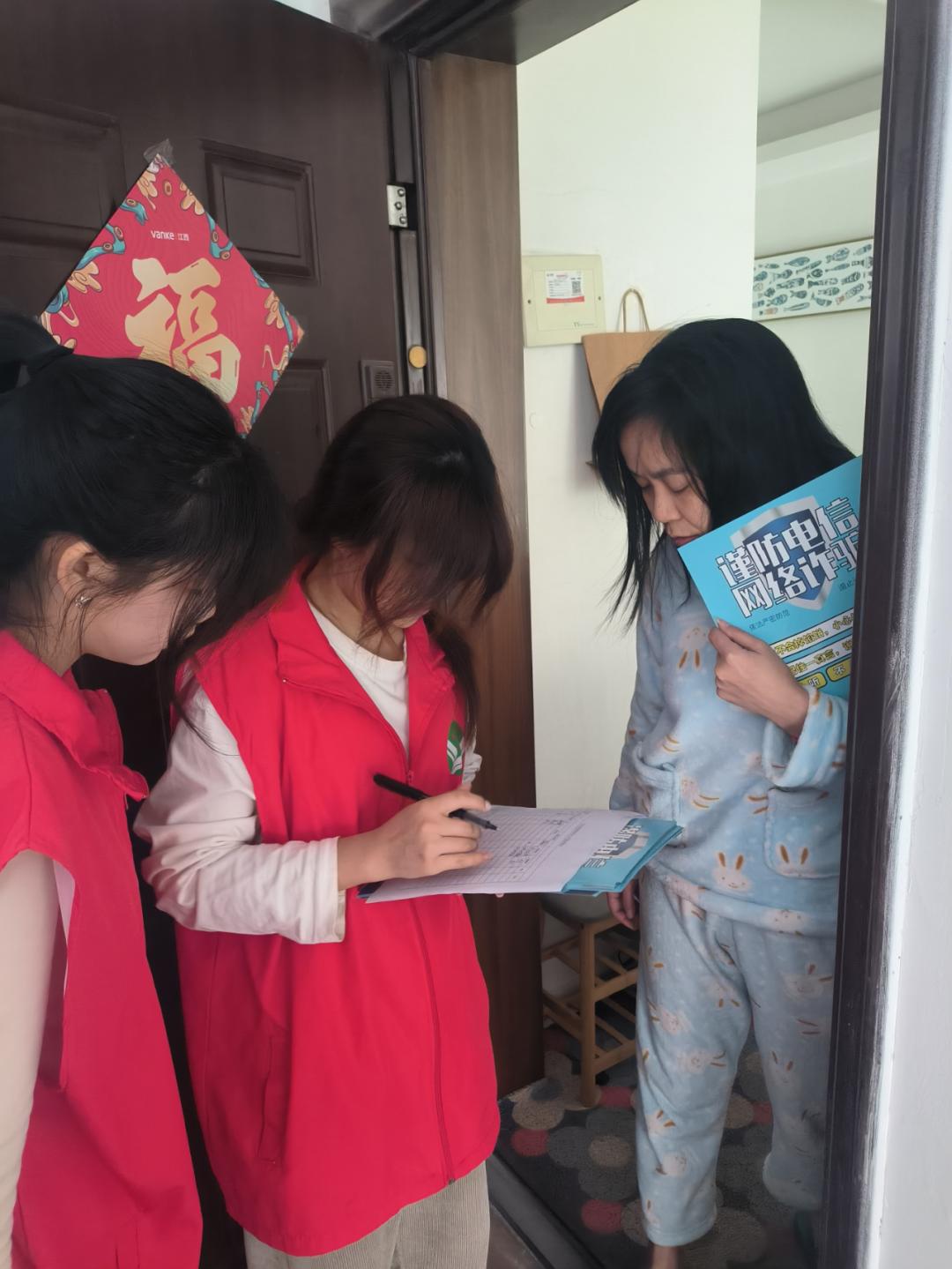 为深入推进平安社区建设,切实提升居民防范电信网络诈骗的意识和能力,守护好居民群众的财产安全,近期,南方社区组织网格员开展了一场全覆盖、精准化的“敲门入户”反诈宣传活动,将反诈知识送到千家万户,打通基层安全防范的“最后一米”。