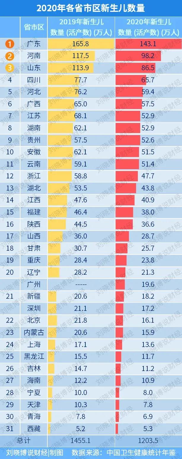 而广东有点例外,是全国2020年生育人口唯一突破百万的省,达到143.1万人,出生率也排在全国第五的位置,是为生育做贡献最大的地区。