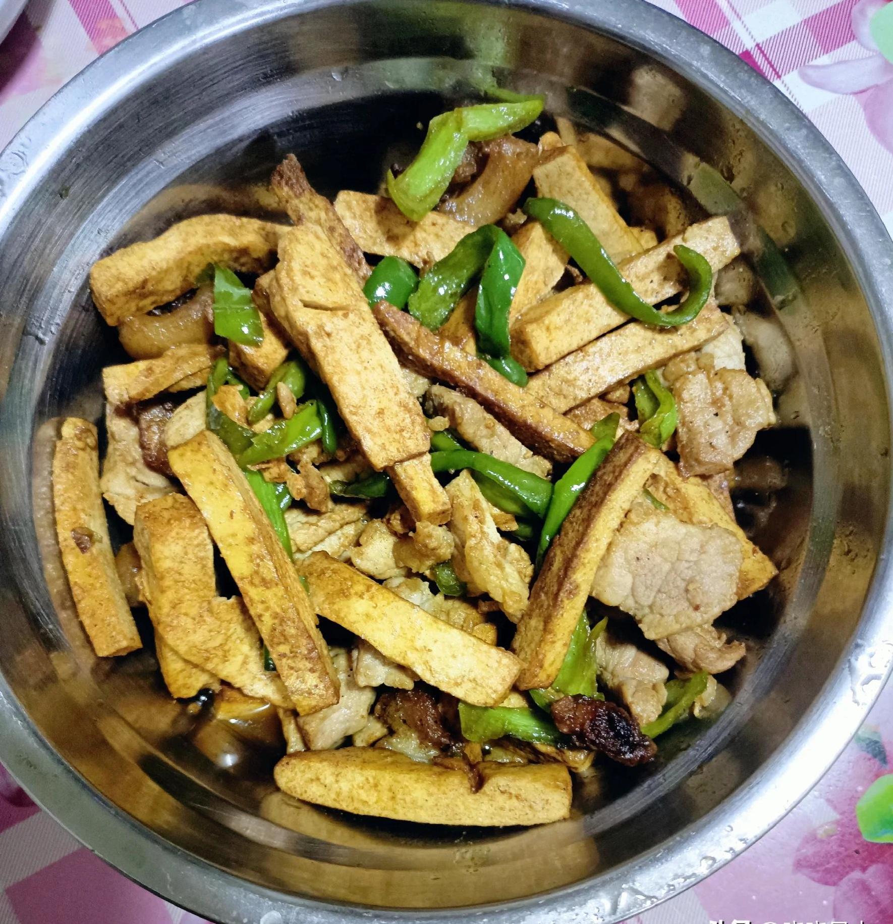 再说青椒瘦肉炒豆腐干,豆腐干来自我们附近很有名的小店,炒的火候刚刚好,鲜嫩不油腻。