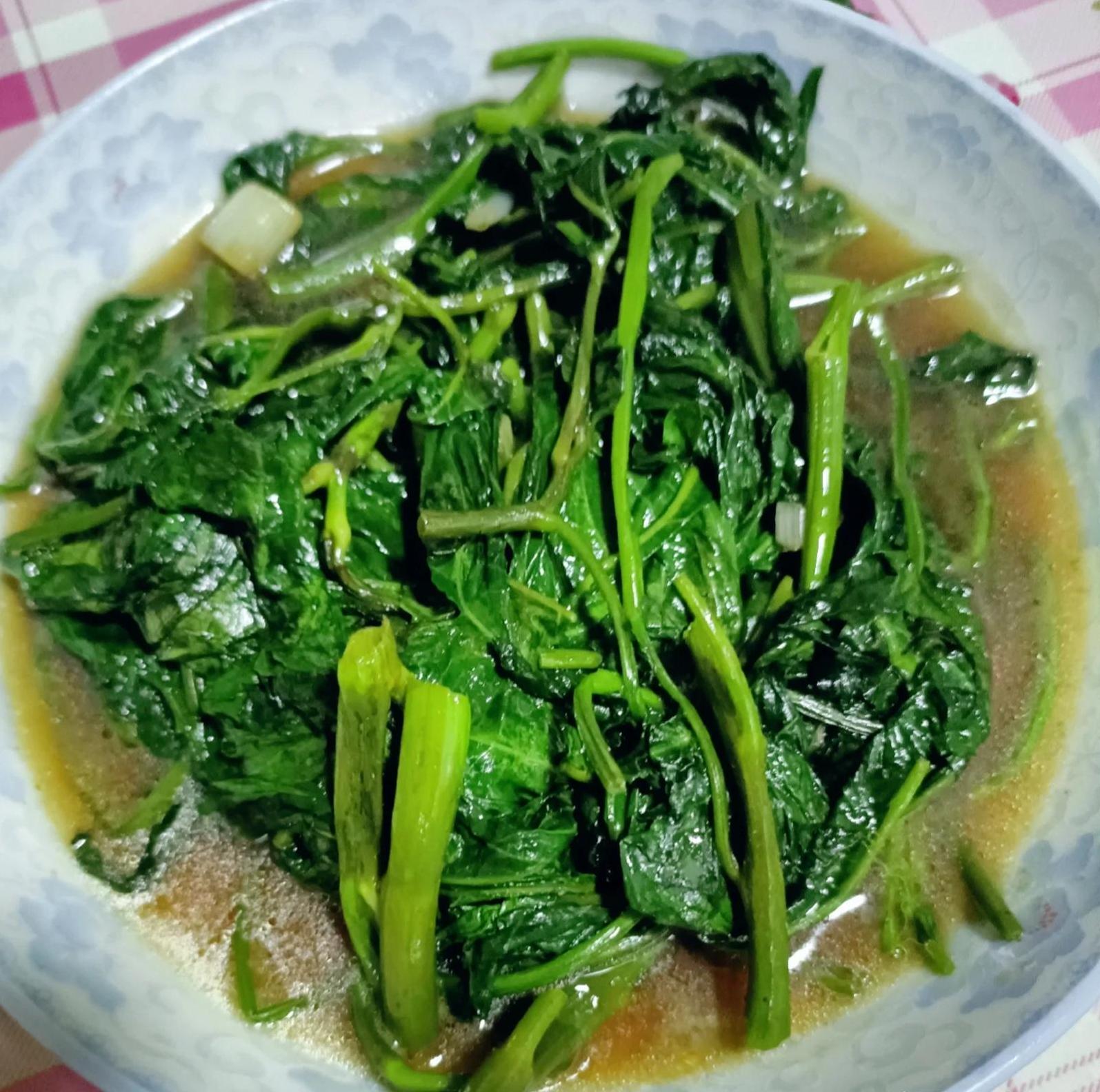 另外两道则是简单炒个青菜,再配上一道略带腥香的油煎带鱼,经过几次尝试,我找到了腌制后煎至酥嫩的方法。