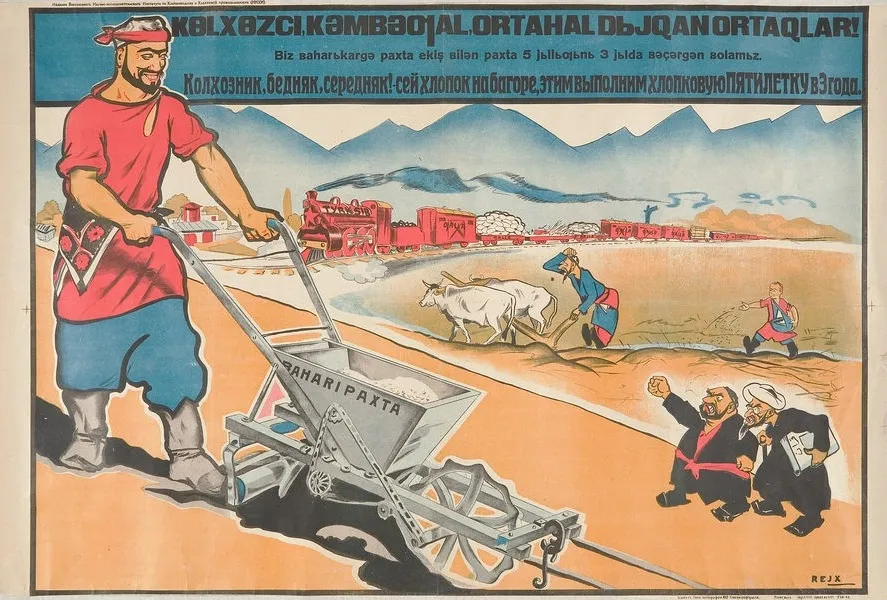 苏联宣传画中的中亚富农形象(右下)