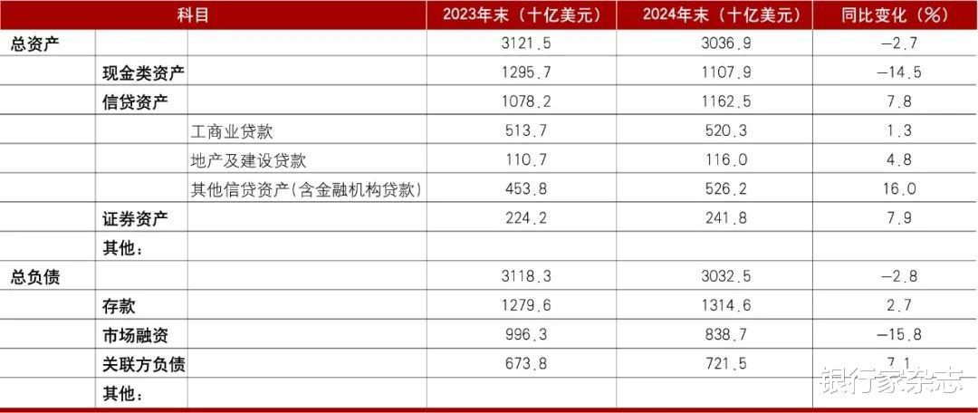 表2 2024年美国外资银行业机构资产负债结构变化情况