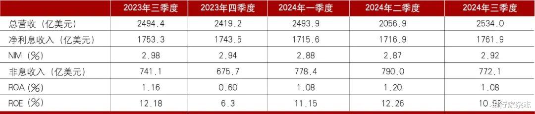 第二,资产质量继续承压。根据最新可得数据,2024年前三季度美国银行业不良资产率分别为0.49%、0.49%和0.52%,较2023年末的0.47%和2022年末的0.39%进一步提升;不良贷款率分别为0.91%、0.91%与0.95%,较2023年末的0.86%和2022年末的0.74%也继续攀升。信用卡、汽车、商业房地产等板块较为疲软,但问题资产、问题贷款总量仍然较低。