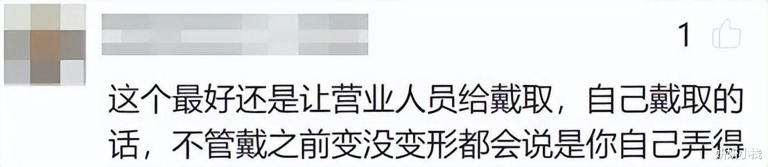 另一位网友觉得,这镯子最好还是让营业员帮忙戴和取,要是自己动手,不管戴之前镯子有没有变形,他们都会说是你自己弄坏的。