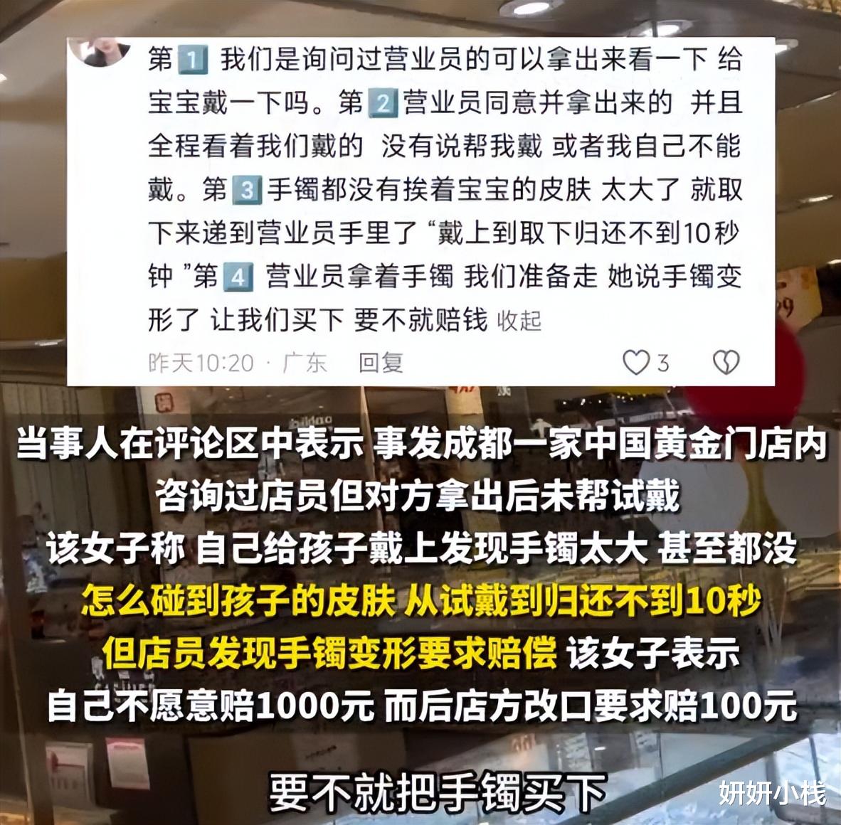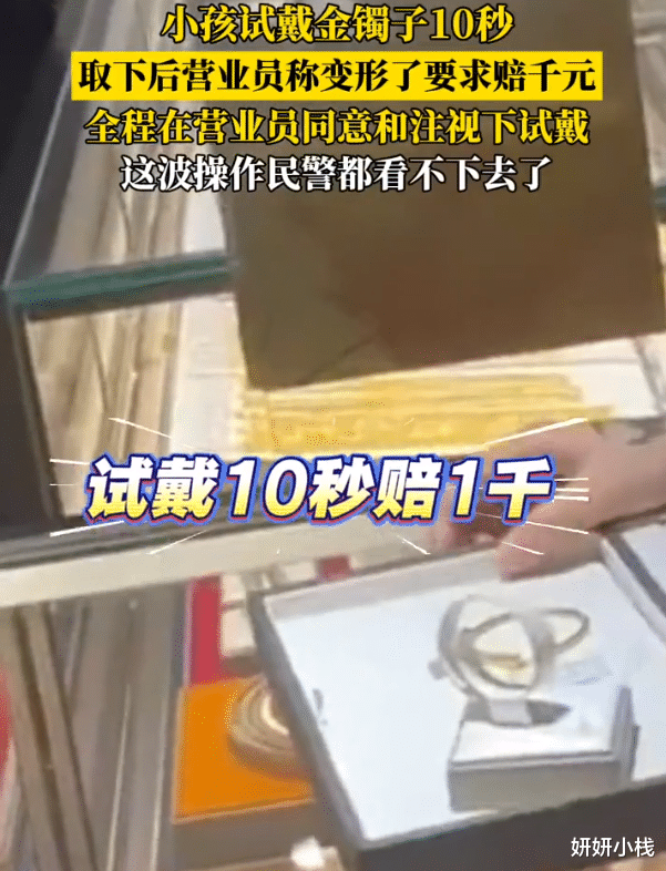 小朋友试戴金手镯10秒钟,竟然被索赔1000元?