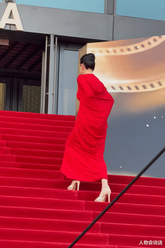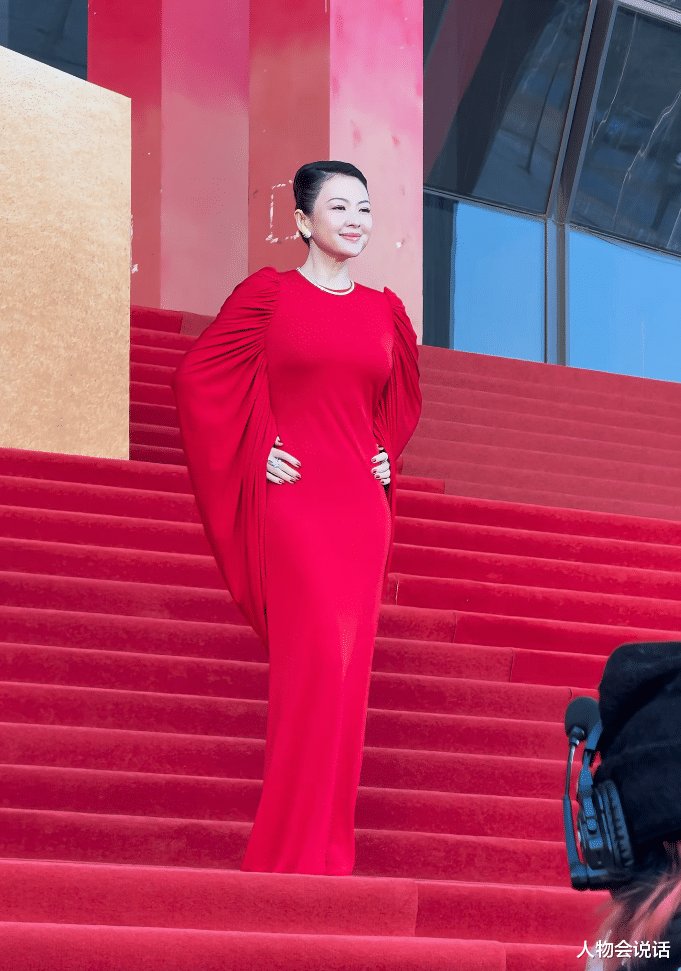 礼服直接一身红,略显丰腴的腰身曲线,要多亮眼就有多亮眼。用网友的话说,章子怡这身红,简直比红毯还要红!