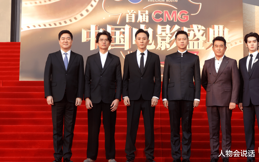 跟王雷,于适,王志飞这些同行们合影时。西装革履的刘烨,还是目视前方,一脸严肃, 站得比谁都直。