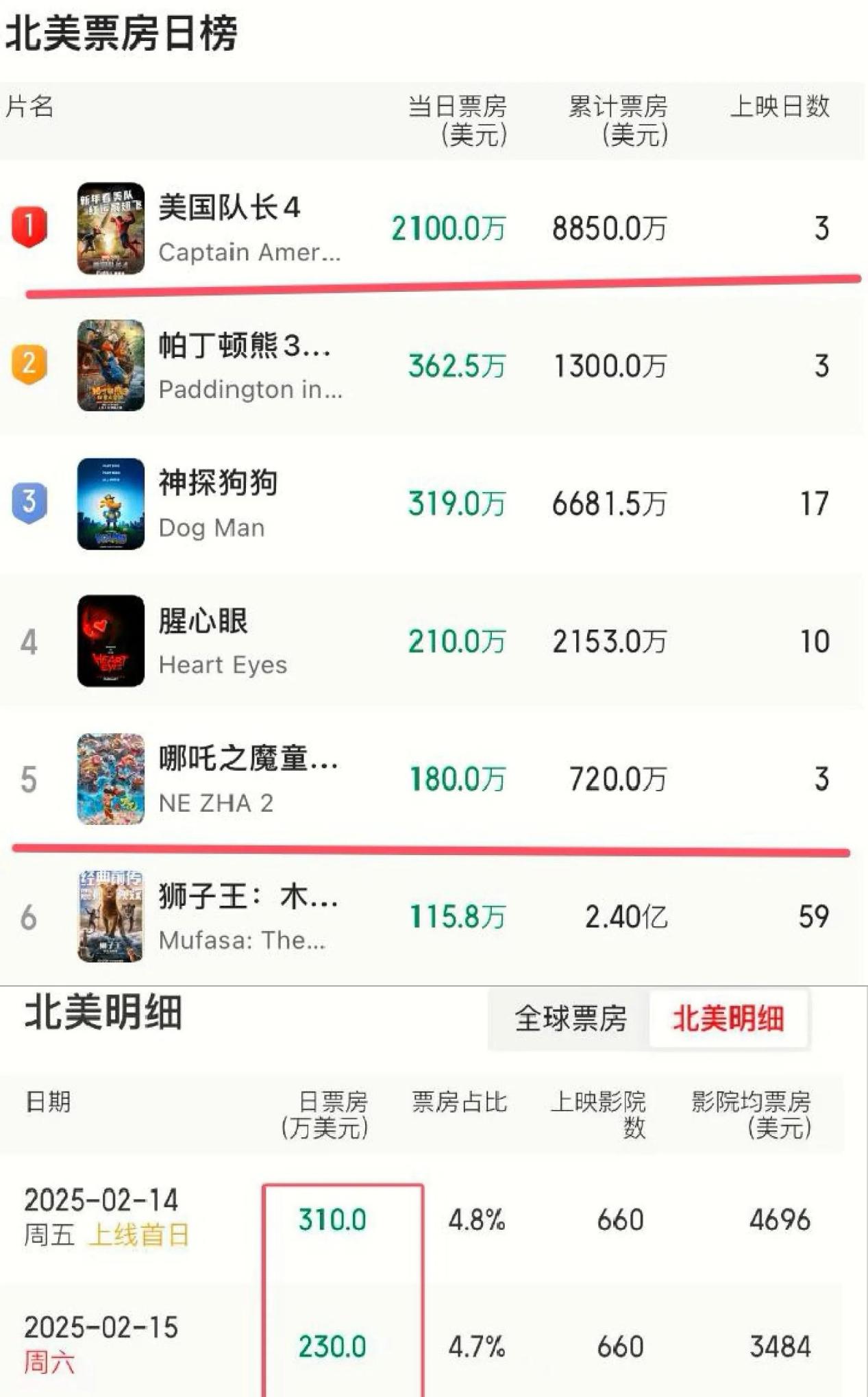 北美市场的反应属实让人猜不透,明明有660家影院在放,票房却像坐滑梯一样往下掉,休息日的票房才三百多万美元,这种成绩放在北美市场简直就是不及格。