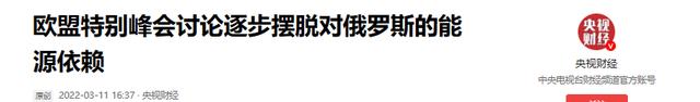 信息来源:央视财经 2022-3-11 欧盟特别峰会讨论逐步摆脱对俄罗斯的能源依赖