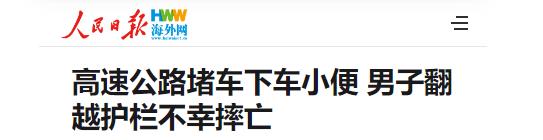 信息来源:高速公路堵车下车小便 男子翻越护栏不幸摔亡
