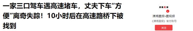 信息来源:一家三口驾车遇高速堵车,丈夫下车“方便”离奇失踪!10小时后在高速路桥下被找到