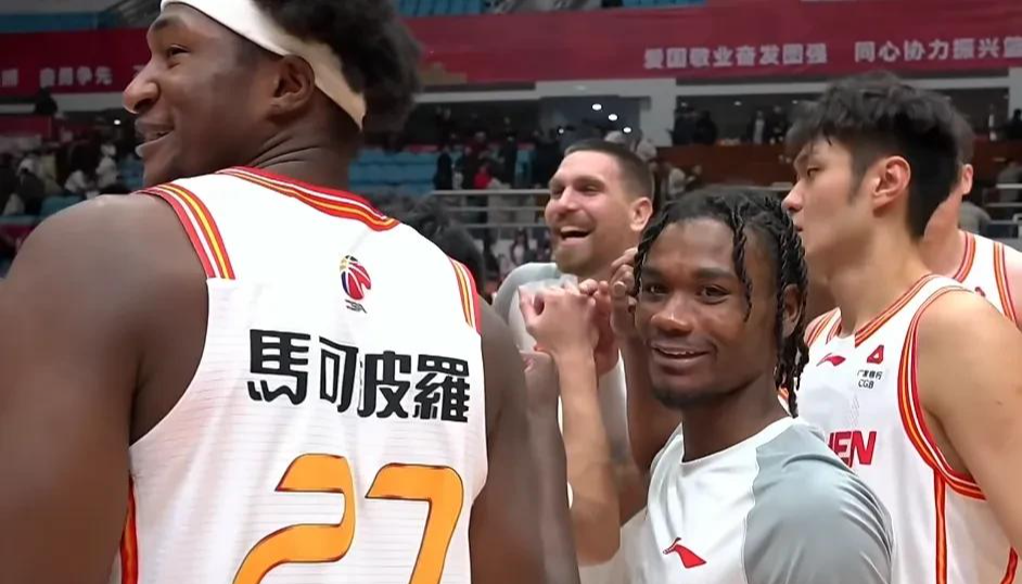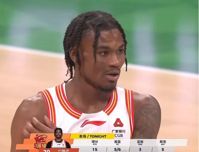 除了史密斯之外。本土球员王浩然15分7篮板3助攻,贺希宁12分8篮板1助攻的数据,三名球员得分上双。