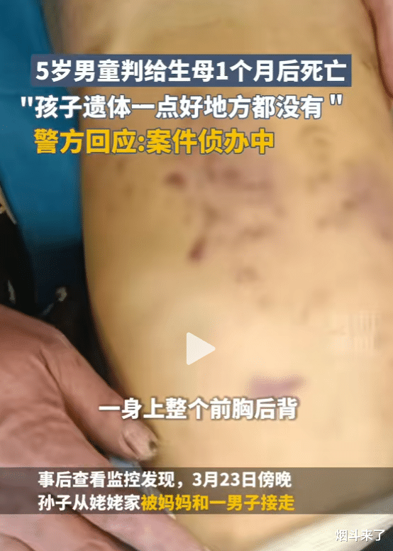 等到掀开孩子身上的衣服,便看到连胸腹部这样脏器集中的地方,都全是暴力殴打留下的痕迹,胸骨凹陷肝脏破碎。